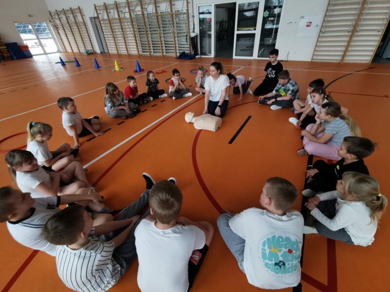 W środę 18 lutego 2026 r. uczestnicy półkolonii zapoznali się z tematyką pierwszej pomocy, czyli zdobyli najcenniejszą wiedzę, która może komuś uratować życie.