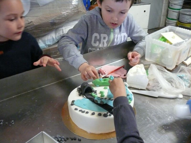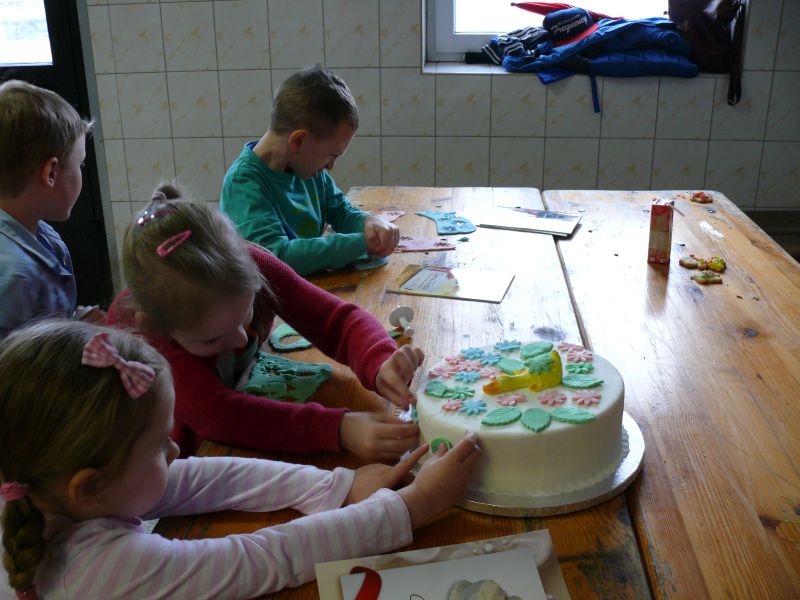 Na koniec dzieci ozdabiały torty masami cukierniczymi. W trzech grupach powstały kolorowe i pachnące torty.