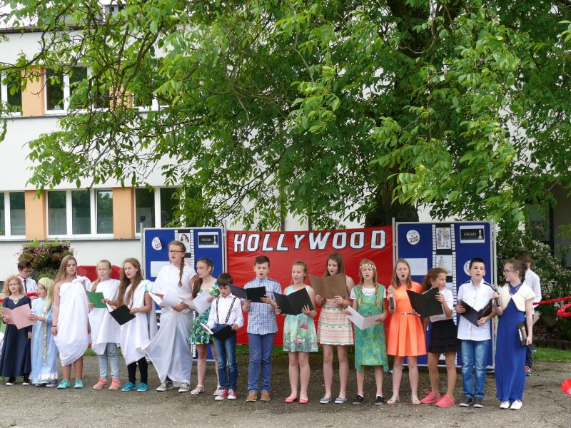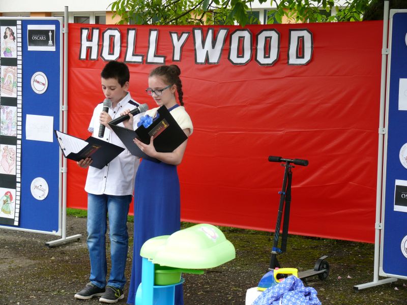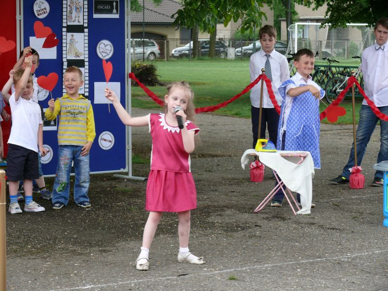 30. maja 2016 r. w naszej szkole odbył się Dzień Matki. W tym roku dzieci w hollywoodzkim stylu prezentowały inscenizacje, recytowały wiersze, tańczyły oraz śpiewały. W rolę prowadzących galę rozdania Oscarów wcielili się Kinga Skiba i Paweł Płaszczymąka. W programie artystycznym wystąpili wszyscy uczniowie naszej szkoły, każdy miała swoją rolę czy zadanie. Na początek tradycyjnie wystąpili najmłodsi czyli przedszkolaki. Zaprezentowali oni inscenizację o mamie i tacie oraz piosenki i wiersze. Inga Gasiak zaśpiewał piękną i wzruszającą piosenkę „Kocham Cię”. Tuż po przedszkolakach wystąpili uczniowie klas I,II,III. W ich programie artystycznym znalazły się wiersze, piosenki oraz taniec. Trzecia część występów to wspomniana „Gala rozdania Oskarów”. Uczennice i uczniowie klas IV, V, VI przygotowali muzyczny program artystyczny – zaprezentowali zebranym znane i mniej znane piosenki z bajek. Jako soliści wystąpili: Weronika Więcek, Magdalena Kandzia, Wojciech Kita, Olivia Filipczyk, Roksana Michalik, Patrycja Churas, Alicja Smak, Kinga Skiba, Julia Lech i Oliwia Kuźniak wraz z chórkiem w składzie: Paulina Golasz, Julia Lech, Natalia Kamińska, Kinga Skiba, Patrycja Unverricht. Każdy solista po zaśpiewaniu piosenki otrzymał Oskara. Gala zakończyła się wspólnym odśpiewaniem piosenek dedykowanych zebranym gościom oraz wręczeniem prezentów dla mam. Na zakończenie spotkania w ramach akcji „Cała Polska czyta dzieciom” P. Agata Kamińska oraz P. Beata Witkowska przeczytały zebranym wiersze.