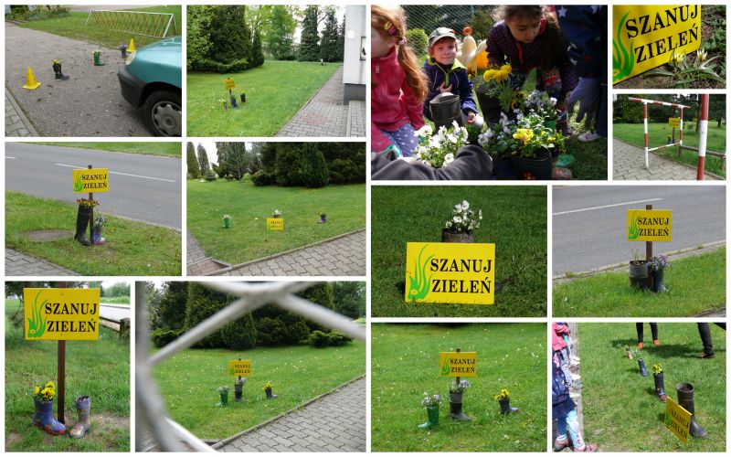 Zadanie konkursowe polegało na wykonaniu prezentu dla Planety – dzieci zwróciły uwagę na problem deptania trawnika i kwiatków w nim rosnących w Ogrodzie Botanicznym przy szkole. Postanowiły temu zaradzić poprzez zasadzenie kwiatków w bardzo niecodziennych doniczkach bo w starych, niepotrzebnych już nikomu kaloszach. Posadzone kwiatki trafiły do ogrodu, ale także w inne miejsca wokół szkoły, gdzie warto zwrócić uwagę na szanowanie zieleni. Każde miejsce z kwiatkami w butach zostało także opatrzone tabliczką „Szanuj zieleń”.
