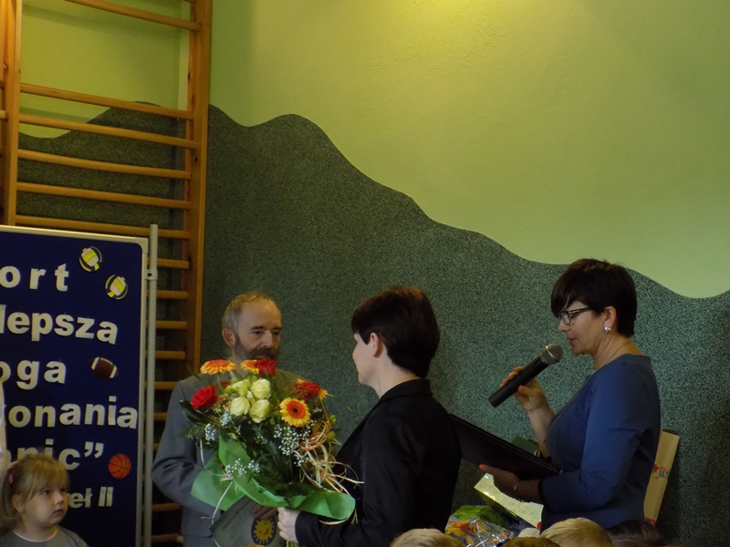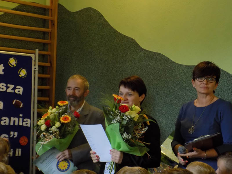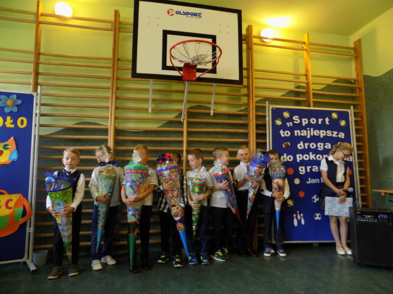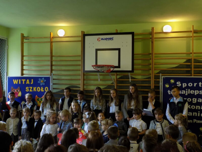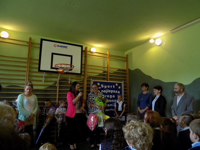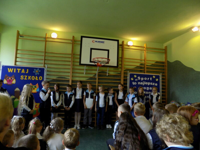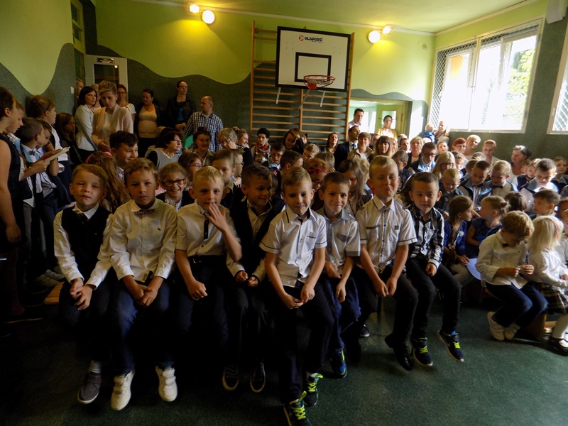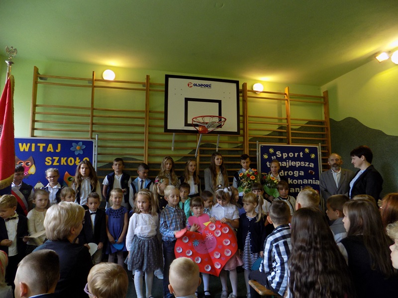września 2017 r. uczniowie rozpoczęli kolejny rok nauki i tym samym pożegnali dwóch nauczycieli kończących pracę w naszej szkole. Na początku pani Dyrektor przywitała zaproszonych gości, rodziców, grono pedagogiczne, pracowników szkoły oraz uczniów w nowym roku szkolnym. Następnie przekazała mikrofon uczniom, którzy wierszem i piosenką pożegnali naszych wspaniałych nauczycieli: pana Edwarda Morcinka i panią Klaudię Skiba, którzy w tym roku zakończyli swoją pracę w naszej szkole. Uczniowie wręczyli kwiaty oraz podziękowania a przedszkolacy wręczyli duże serce swojej byłej pani, tym samym dziękując za wszystko. Podziękowania również przekazała pani Dyrektor za długoletnią pracę i zaangażowanie oraz Rodzice. Następnie uczniowie klasy IV przywitali nowy rok szkolny wierszem i piosenką oraz najmłodszych swoich kolegów – pierwszoklasistów. Po części artystycznej pani Dyrektor wręczyła pierwszakom „Rogi obfitości” – słodki upominek.
