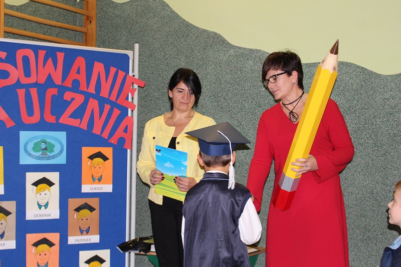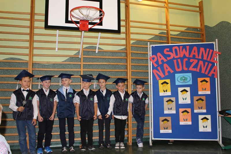 Na początku dzieci wraz z rodzicami udali się do ogrodu botanicznego, gdzie zasadziły drzewko, które będzie im przypominało o ważnej dla nich uroczystości. Następnie wrócili do klasy aby razem z rodzicami świętować ten uroczysty dzień. Po słodkim poczęstunku wszyscy zeszli na salę by wziąć udział w pasowaniu na ucznia. Uczniowie kl. I zaprezentowali wiersze i piosenki, których nauczyli się dotychczas w szkole, a następnie złożyli przysięgę i zostali pasowani przez panią Dyrektor na uczniów kl. I. Na pamiątkę tego wydarzenia złożyli swój podpis odbijając palec w księdze szkoły oraz otrzymali pamiątkowe dyplomy i odblaski.