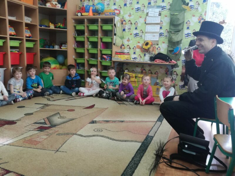 27.02.2018 gościliśmy w naszym przedszkolu Kominiarza, Pana Iwanowskiego. Gość opowiedział dzieciom wiele ciekawostek związanych z zawodem kominiarza. Zaprezentował narzędzia, którymi posługuje się w trakcie czyszczenia kominów. Przedszkolaki poznały legendę „Guzika na szczęście”, dowiedziały się też kilku bardzo ważnych rzeczy: po co czyszczone są kominy, do czego służą kratki wentylacyjne, dlaczego nie wolno palić śmieci w domowych piecach.