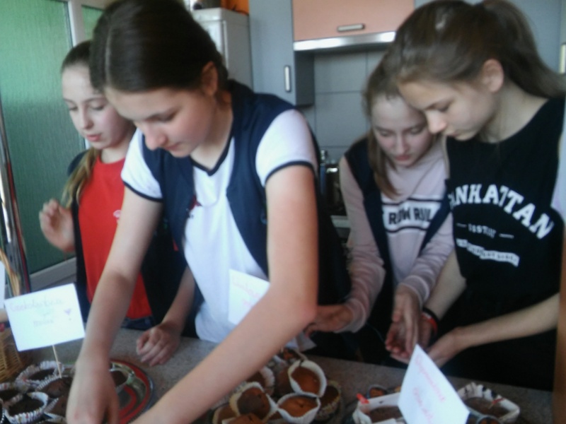 18 kwietnia 2018 r. uczennice kl. VII zorganizowały na terenie szkoły sprzedaż upieczonych przez siebie babeczek i degustację różnych gatunków czekolady. Akcja ta miała na celu zebrabie pieniędzy na rzecz schroniska dla zwierząt. Ten „słodki” dzień bardzo spodobał się pozostałym uczniom, którzy z ochotą kupowali babeczki i z apetytem je zjadali. Uczennice kl. VII, organizując tego typu akcje, nie tylko uczą się pomagać, poświęcając swój czas i zaangażowanie , ale także uczą się przedsiębiorczości i gospodarowania pieniędzmi.