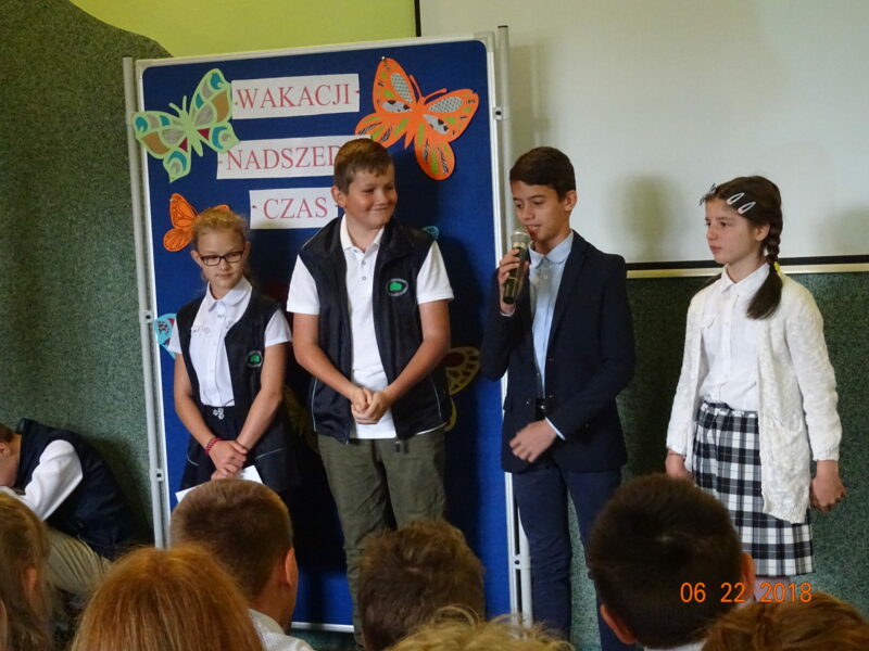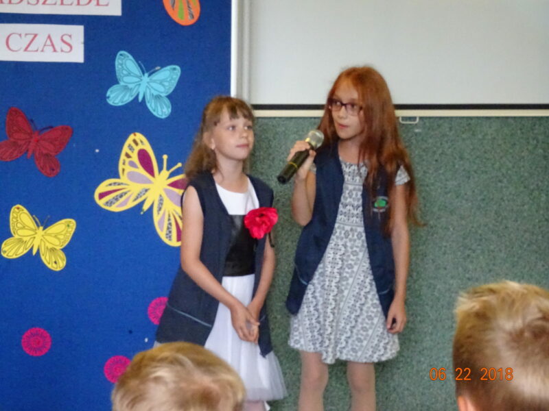 Dzień wyczekiwany przez wielu uczniów, którzy chcieli rozpocząć upragnione wakacje. Uczniowie przedstawili część artystyczną, dedykowaną rodzicom, nauczycielom oraz swoim kolegom i koleżankom. Pani dyrektor pogratulowała uczniom wysokich wyników w nauce, życząc wszystkim wesołych i bezpiecznych wakacji.