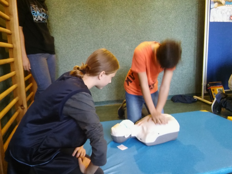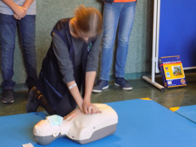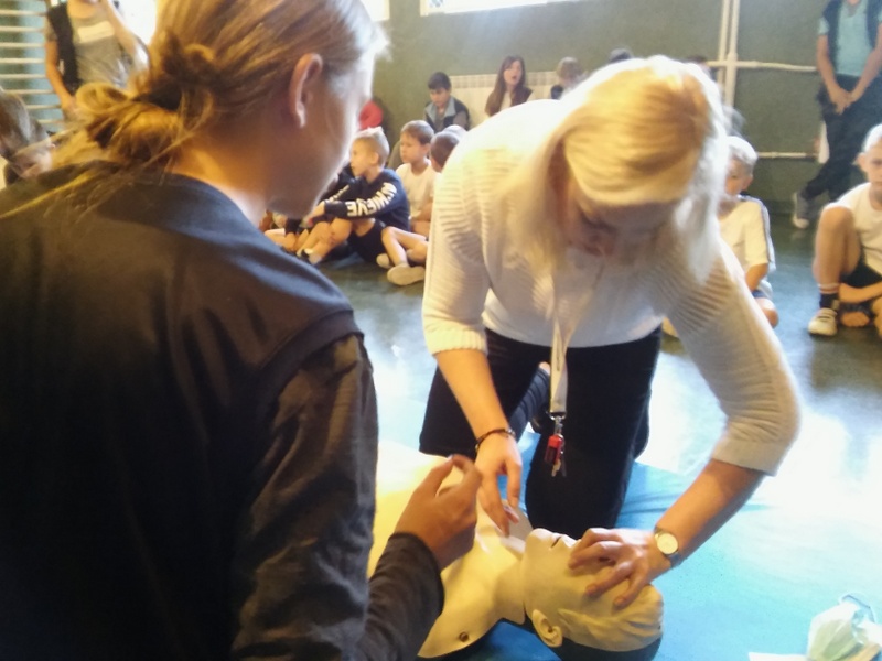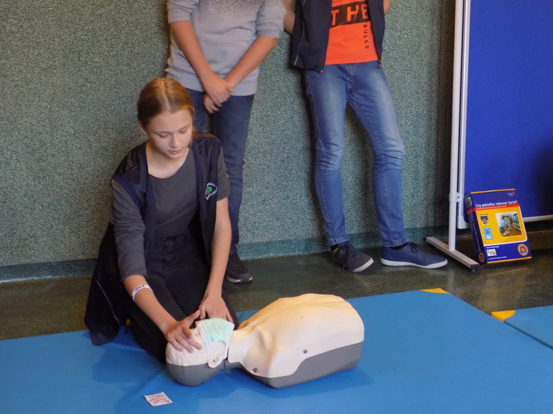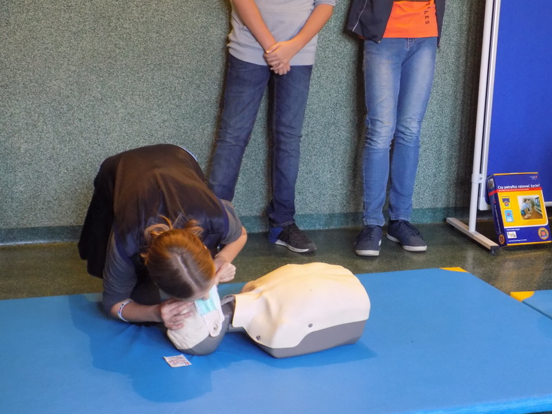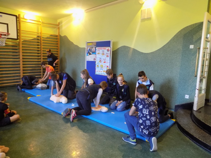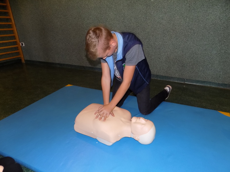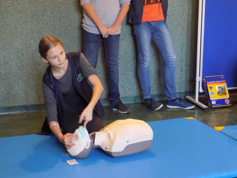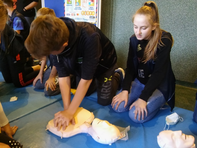 16 października 2018 r. ,z inicjatywy Samorządu Uczniowskiego, uczniowie naszej szkoły wraz z nauczycielami włączyli się w akcję Wielkiej Orkiestry Świątecznej Pomocy, której celem było bicie rekordu w jednoczesnym prowadzeniu resuscytacji krążeniowo-oddechowej. Nadrzędnym celem tej akcji było przeszkolenie jak największej ilości osób w udzielaniu pierwszej pomocy. Akcja trwała 30 minut.Wszyscy uczniowie, którzy przystąpili do bicia rekordu, zostali wcześniej przeszkoleni przez wychowawców bądź nauczyciela edukacji dla bezpieczeństwa, którzy przeprowadzili zajęcia na temat udzielania pierwszej pomocy, pokazali wychowankom filmy instruktażowe i przeprowadzili ćwiczenia praktyczne na fantomach. Dodatkowo, przed przystąpieniem do bicia rekordu, uczennice kl. VIII, działające w Młodzieżowej Ochotniczej Straży Pożarnej, przeprowadziły krótką pogadankę na temat prawidłowego udzielania pierwszej pomocy oraz udzieliły potrzebnych instrukcji swoim młodszym kolegom i koleżankom.