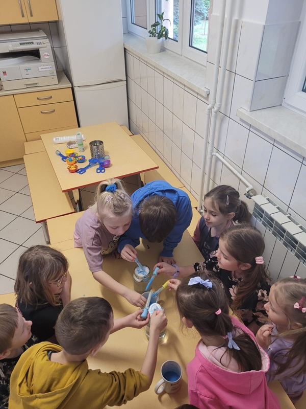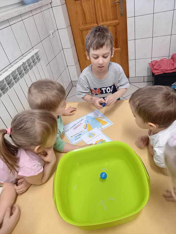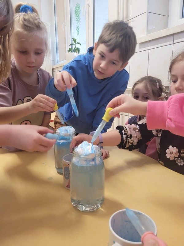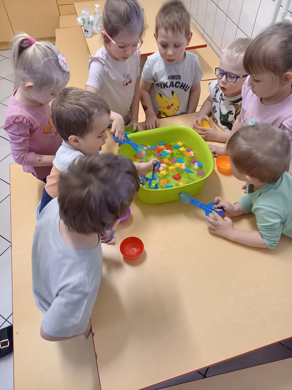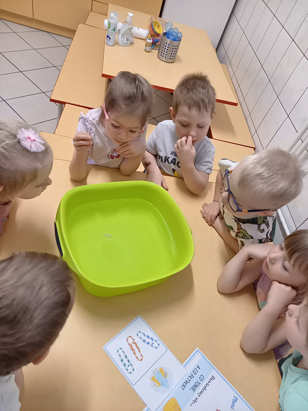 Przedszkolaki doświadczały kontaktu z wodą i eksperymentowały z nią. Badały, które przedmioty pływają, a które toną. Stworzyły deszcz w słoiku, łowiły zwierzątka morskie. Dzieci obejrzały film edukacyjny pt. „Oszczędzanie wody”, dokładnie policzyły krople wody oraz wykonały pracę plastyczną. Święto Wody było wspaniałym, radosnym dniem, który obfitował w atrakcje i wydarzenia. Przypomniał dzieciom, jak ważną rolę w naszym życiu pełni woda.