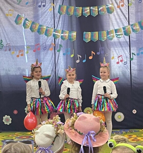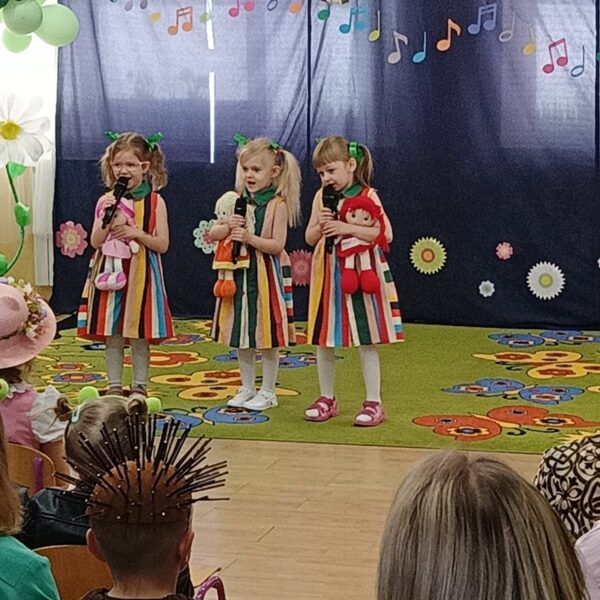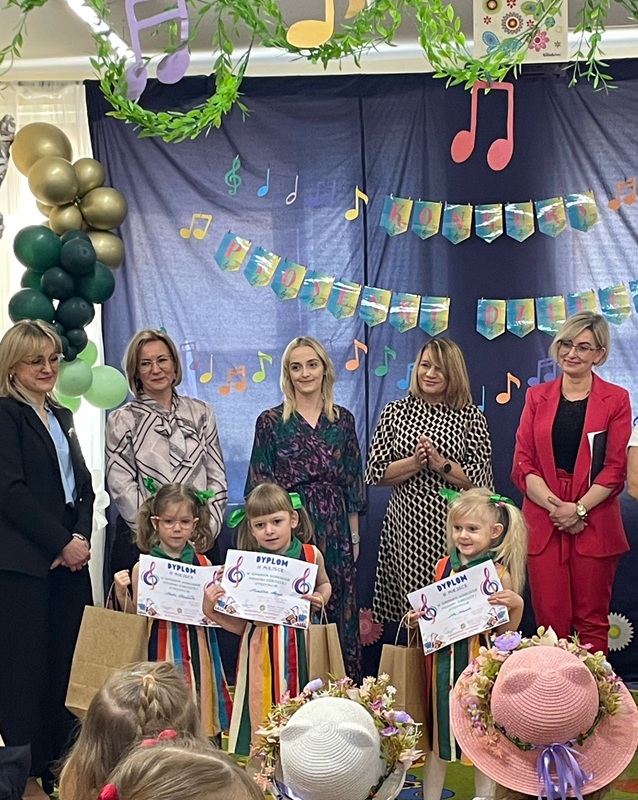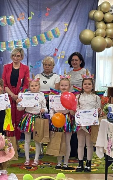Nasz oddział przedszkolny dumnie reprezentowały z grupy dzieci 3 i 4-letnich: Michalina Heryk, Mia Stanek i Maria Zdrzałek z piosenką „Zuzia lalka nieduża” zajmując III miejsce. Natomiast z grupy dzieci 5 i 6-letnich wystąpiły: Liliana Oleksik, Hanna Płonka oraz Bianka Tkocz. Dziewczynki wykonały piosenkę pt. „Tęcza” zdobywając wyróżnienie. Serdecznie gratulujemy naszym artystkom i życzymy dalszych sukcesów oraz rozwijania swoich talentów. Organizatorom serdecznie dziękujemy za zaangażowanie w przygotowanie tego wydarzenia.