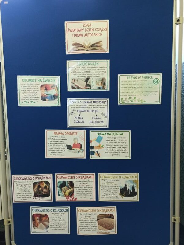 30 kwietnia obchodziliśmy w naszej szkole Światowy Dzień Książki i Praw Autorskich. Święto ustanowione w 1995 roku przez UNESCO – ma na celu promocję czytelnictwa, sztuki edytorskiej oraz ochrony własności intelektualnej.