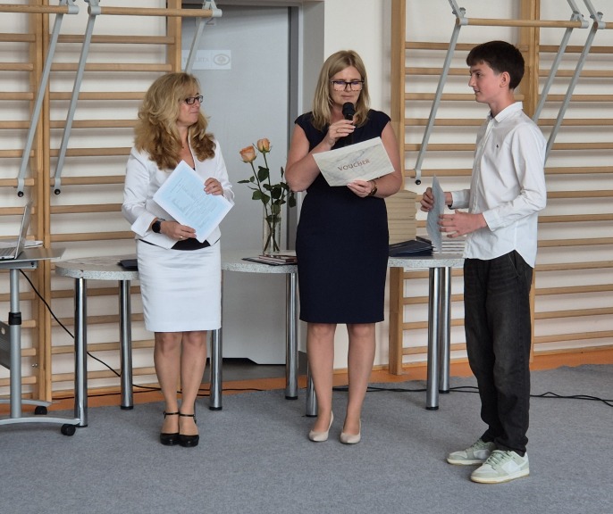 Najlepsi uczniowie z klas 4-8 otrzymali świadectwa z wyróżnieniem i gromkie brawa, a najlepszy uczeń w szkole tradycyjnie otrzymał nagrodę pieniężną.