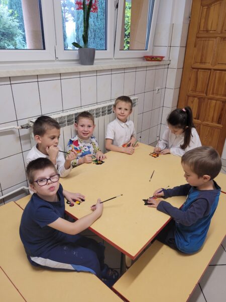 W naszym przedszkolu rozbrzmiewały piosenki o zwierzętach, czytaliśmy bajki i oglądaliśmy ciekawe filmy przyrodnicze o różnych gatunkach zwierząt. Dzieci słuchały i odgadywały odgłosy zwierząt, a także rozwiązywały zagadki o zwierzętach, uczestniczyły w zabawach ruchowych. Każdy przedszkolak otrzymał „zwierzęcą opaskę” oraz tatuaż. Powstało wiele pięknych prac – wydrapywanek o naszych milusińskich. Przedszkolaki bardzo chętnie opowiadały o tym, w jaki sposób opiekują się zwierzątkami, które mają w swoich domach.