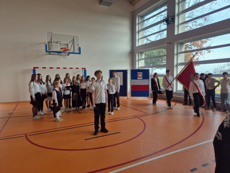 Z okazji Święta Niepodległości w naszej szkole odbyła się 13 listopada uroczysta akademia, w której wystąpili uczniowie klasy 8 oraz chór szkolny.