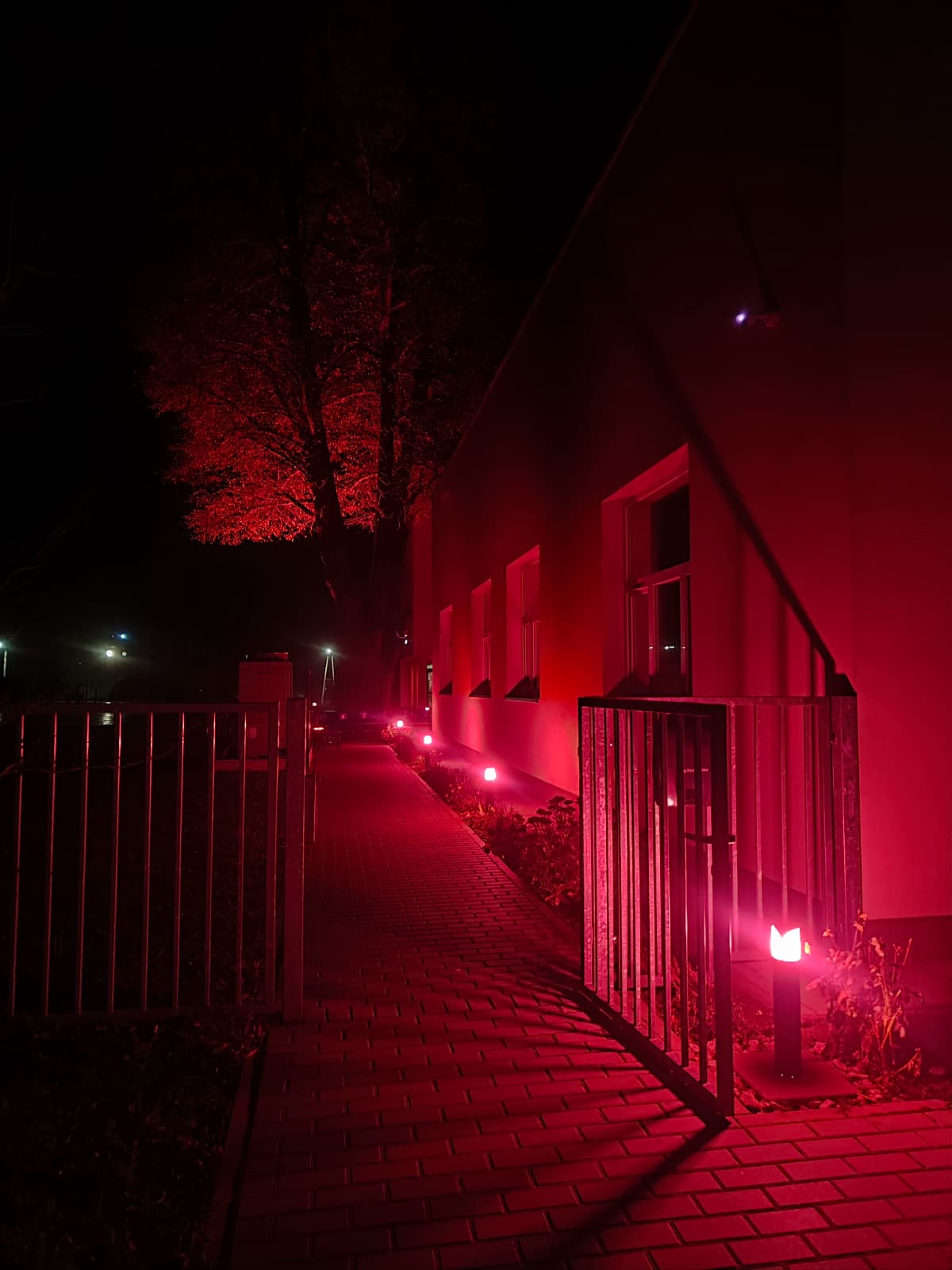 W dniu dzisiejszym – 19 listopada 2025 r. o godz. 17.00 fasada i okolice budynku naszej szkoły rozświetliły się na czerwono. W finale akcji organizowanej przez Fundację Dajemy Dzieciom Siłę wzięły udział setki instytucji publicznych w całej Polsce.