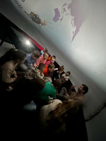 Pokazy kina sferycznego wprowadziło dzieci w nieznany dotąd świat oglądania filmów edukacyjnych pod kątem 360 stopni. Jest to wyjątkowe połączenie zabawy i nauki — uczniowie nie tylko oglądali, ale też czuli się częścią filmu. W ten sposób mogli lepiej zrozumieć zjawiska przyrodnicze, tajemnice kosmosu czy historię naszej planety. Pokazy wzbudziły ogromne zainteresowanie i entuzjazm, a po seansie dzieci chętnie dzieliły się swoimi wrażeniami.