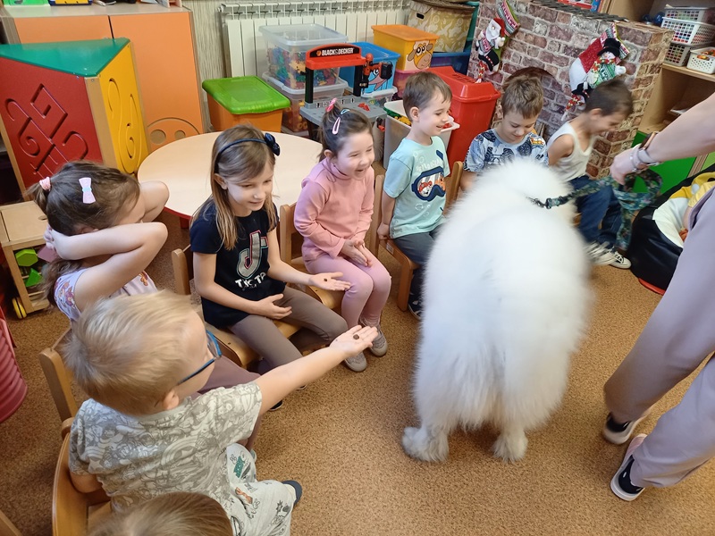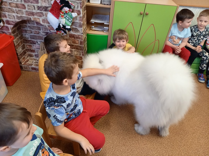 Dnia 12 grudnia 2025 r. przedszkolaki miały okazję ponownego spotkania z Lumi w ramach zajęć z dogoterapii.
