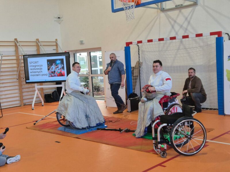 Uczniowie mieli okazję zobaczyć kolekcję medali sportowców, a nawet spróbować sił w szermierce. Była to niezwykła lekcja otwartości i odwagi. Goście pokazali uczniom, że nie ma takich ograniczeń, których nie można pokonać, a siła tkwi w determinacji, pasji i wzajemnym wsparciu. Ich historie stały się inspiracją do tego, aby wierzyć w swoje możliwości i dostrzegać wartość różnorodności.
