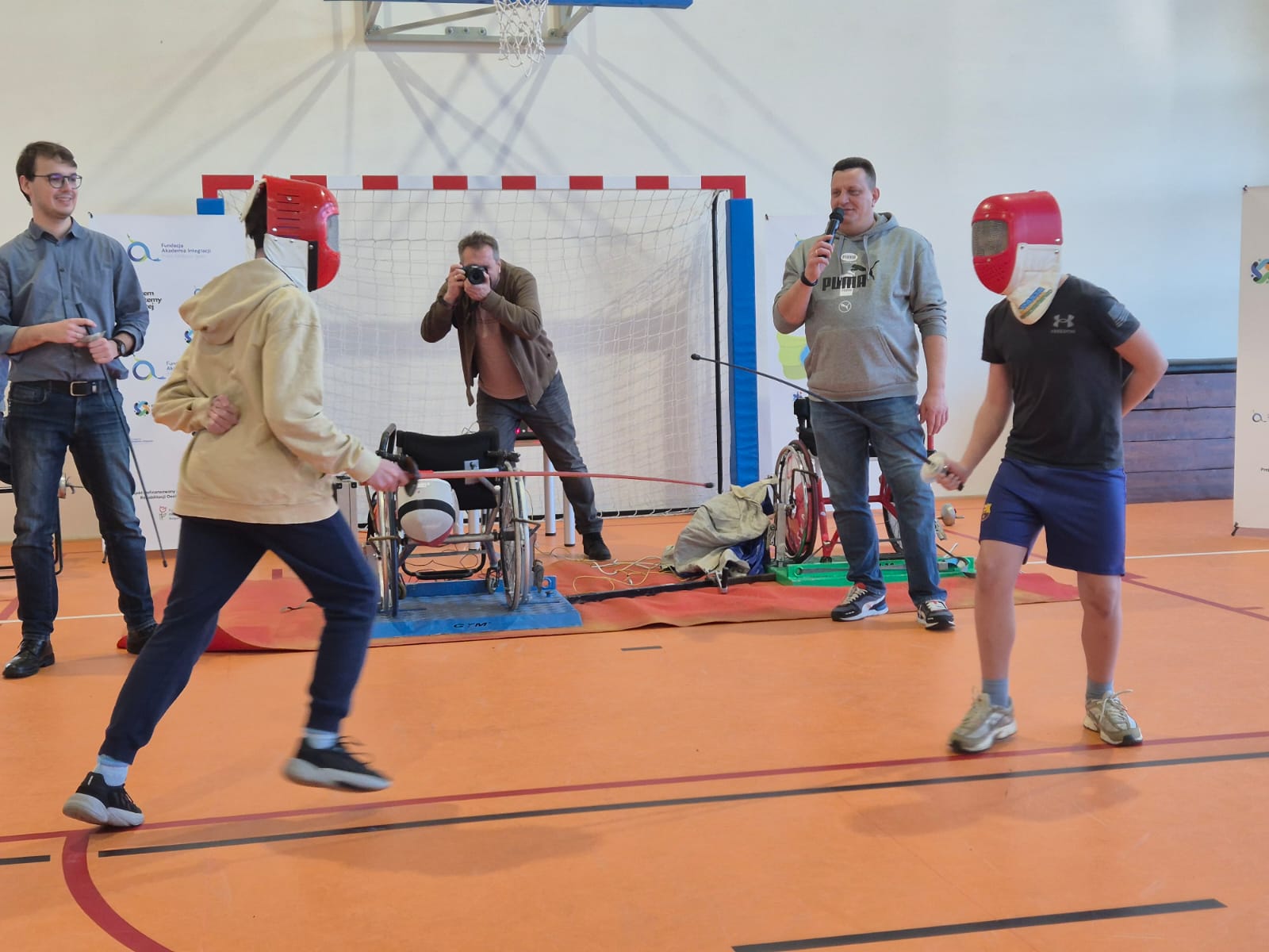 W miniony piątek naszą szkołę odwiedzili wyjątkowi goście z Akademii Integracji w Częstochowie. Spotkanie poprowadził paraolimpijczyk i prezes Fundacji, Pan Radosław Stańczuk, wraz z Łukaszem Fijałowskim, Stanisławem Rabczukiem oraz wybitnymi szermierzami – Rafałem Treterem i Adrianem Castro.