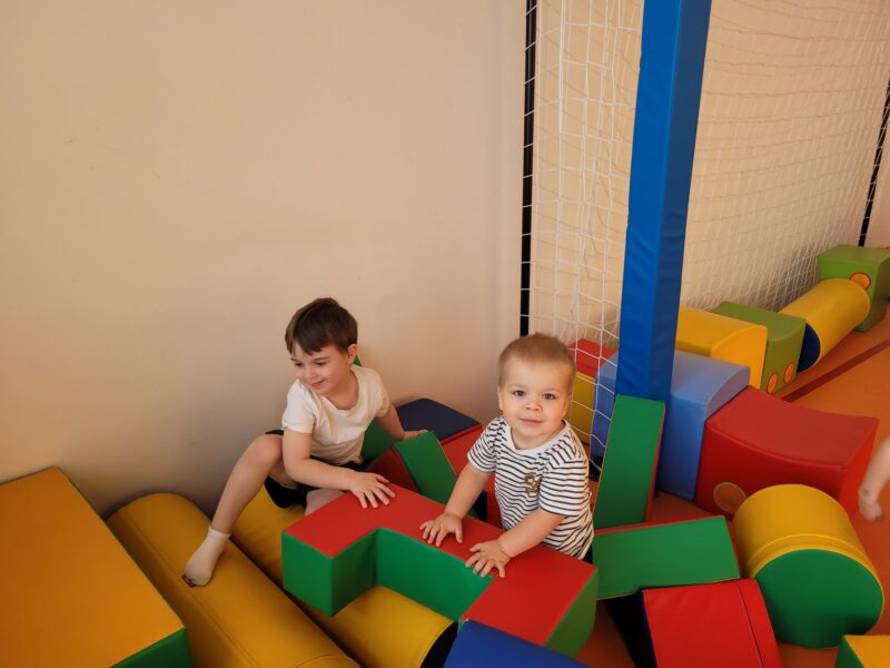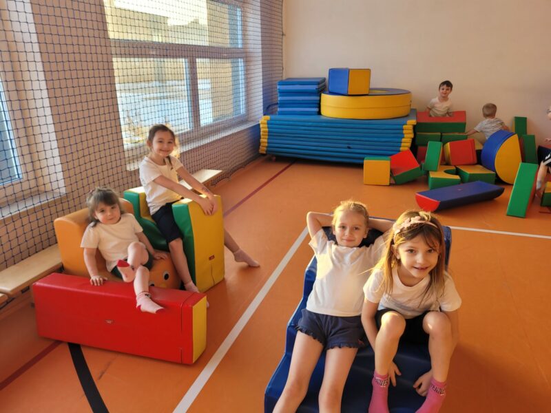 Nasze przedszkolaki wiedzą, że sprawność fizyczna odgrywa kluczową rolę w ich rozwoju, dlatego chętnie korzystają z sali gimnastycznej, zawsze świetnie się bawiąc. Wszystko to w miłej, swobodnej atmosferze. Starając się podążać za naturalnymi potrzebami najmłodszych pomagamy im w ich rozpoznawaniu. Zabawa zawsze jest udana.