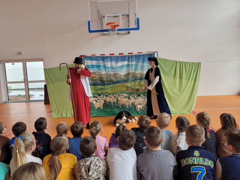 Za nami kolejne radosne spotkanie z aktorami Teatru „Eden” z Wieliczki. Tym razem poznaliśmy historię zagubionej owieczki.