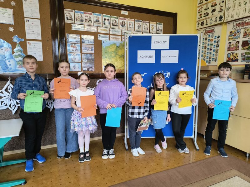 Dnia 12.02.2026 r. w naszej szkole odbył się szkolny konkurs recytatorski pt. „Spotkanie z poezja i prozą”. W wydarzeniu wzięli udział uczniowie klas I-VIII, którzy zaprezentowali utwory poetyckie i fragmenty prozy znanych autorów.