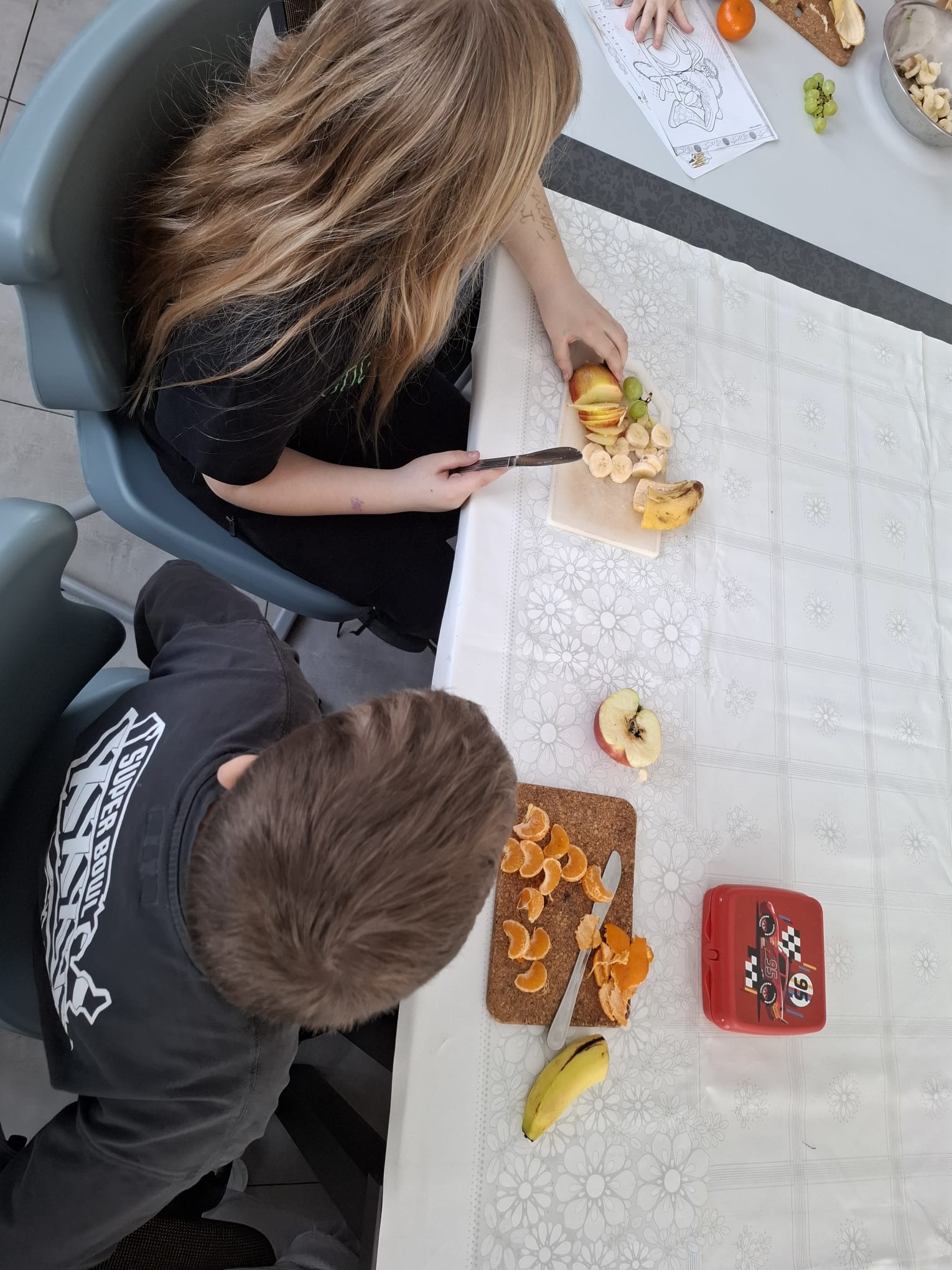 Dzień rozpoczął się od wspólnego, pysznego i zdrowego śniadania. Na talerzach królowały kolorowe. Następnie uczestnicy wzięli w zajęciach profilaktycznych, przypomnieli sobie, czym jest piramida żywieniowa i wykonali własne piramidy, w których uwzględnili ulubione produkty. Gry i zajęcia sportowe na sali gimnastycznej sprawiły, że dzieci miały ogrom energii i chętnie wzięli udział w warsztatach robienia sałatki owocowej. Następnie zagrali w kalambury, a po pysznym podwieczorku rozeszli się do domu. Z niecierpliwością czekamy na zajęcia w kolejnym dniu!