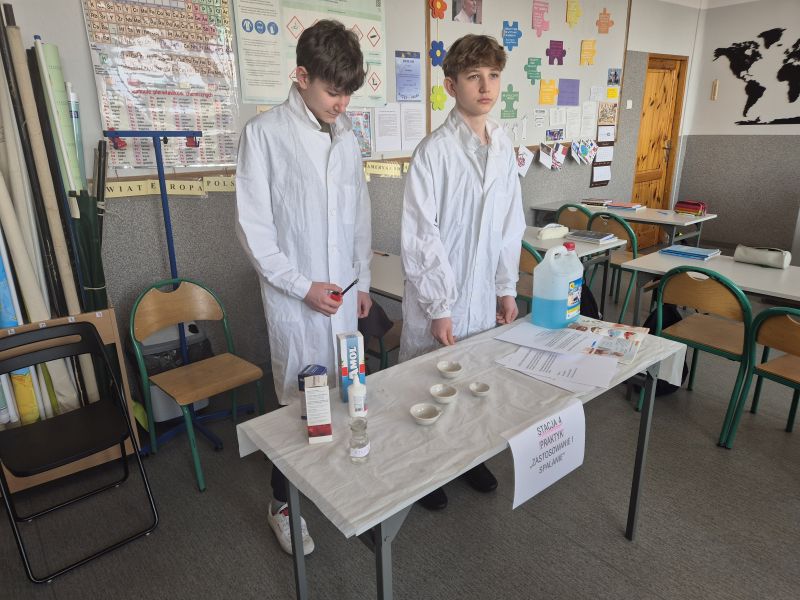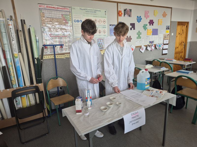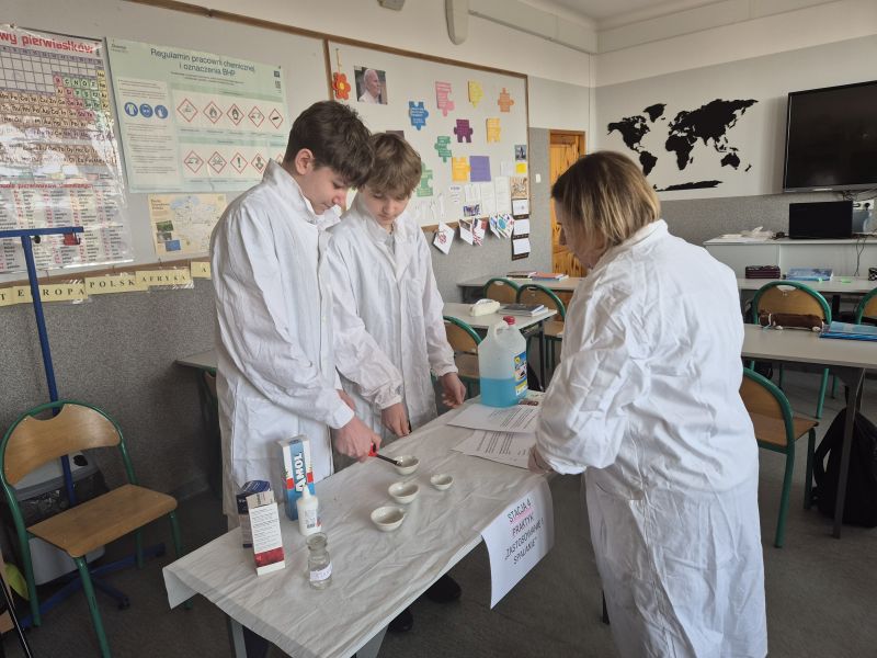 13 marca 2026 r. w klasie VIII odbyła się bardzo ciekawa lekcja otwarta z chemii, którą przeprowadziła pani Wioletta Kołdon. Uczniowie mieli okazję przekonać się, że chemia to nie tylko teoria z podręcznika, ale także fascynujące doświadczenia i praktyczne działania.