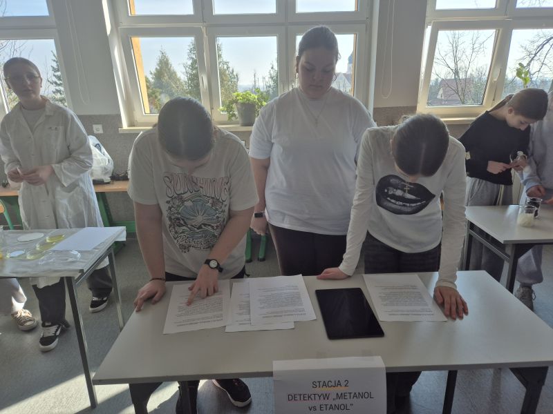 - Stacja 2: Detektyw – wyszukiwanie i analizowanie kluczowych informacji z tekstu dotyczącego toksyczności metanolu i etanolu.