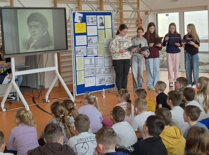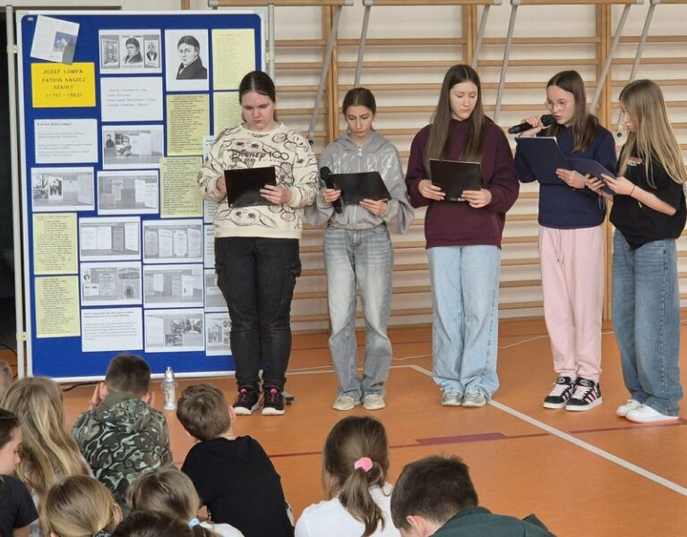 30 marca 2026 r. odbył się w naszej szkole apel poświęcony patronowi szkoły – Józefowi Lompie. Wydarzenie to było związane z obchodami Dnia Patrona. Podczas apelu uczennice klas 8 i 5 zaprezentowały najważniejsze informacje z jego życia, przypominając o jego działalności społecznej, patriotycznej, publicystycznej i artystycznej.