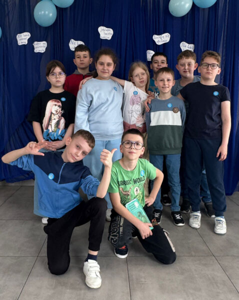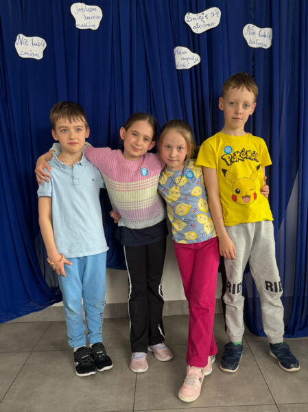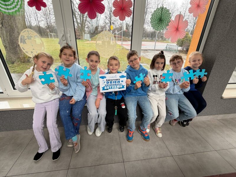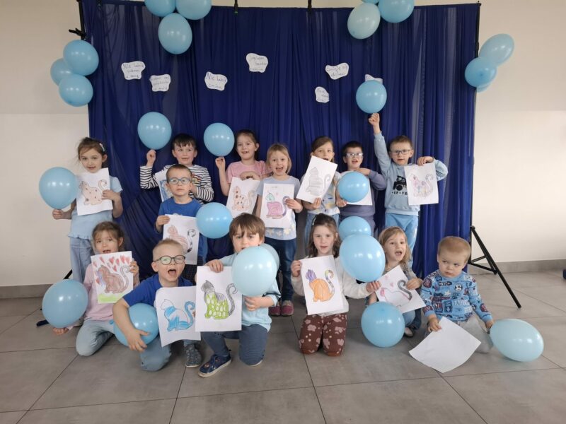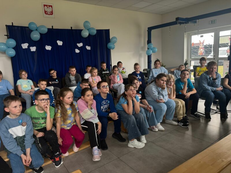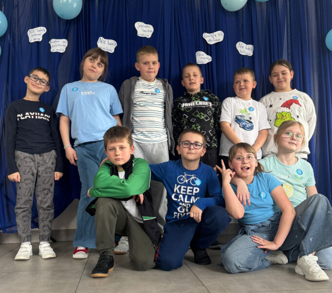 Dziś w naszej szkole oraz przedszkolu obchodziliśmy Dzień Świadomości Autyzmu. Autyzm jest utożsamiany z kolorem niebieskim, dlatego też każdy z uczniów, a także nauczycieli miał przy lub na sobie element w tym kolorze. Zdarzyli się także i tacy, którzy byli ubrani cali na niebiesko. Wszyscy uczniowie uczestniczyli warsztatach związanych z autyzmem. Przedszkolaki słuchali opowiadania o autystycznych kotach, następnie wykonywali zabawy i ćwiczenia sensoryczne, a na koniec każdy z nich pokolorował kotka na swój wyjątkowy sposób. Grupowe zdjęcie z ślicznymi kotkami dostępne w galerii. Uczniowie z klas 1-4 obejrzeli 7minutowy film pt. Float, kolejno opowiedzieli o emocjach jakie towarzyszyły bohaterom filmu. Następnie wzięli udział w szybkiej zabawie ” Kto tak jak ja….?” oraz starali się namalować kwiatka niedominująca ręką. Uczniowie klas 5-8 także zobaczyli kilkuminutowy film przedstawiający zachowania autystów, następnie została przeprowadzona rozmowa związana z filmem i ogólnym pojęciem autyzmu. Wzięli oni również udział w krótkim eksperymencie: Mając założoną rękawicę narciarską musieli zgadnąć jaki przedmiot został ukryty w worku.