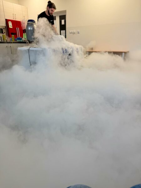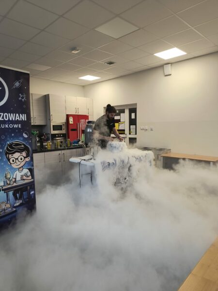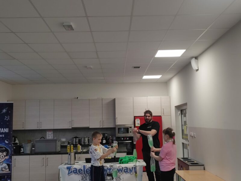 W ramach niezwykłego pokazu uczniowie obejrzeli eksperymenty związane z fizyką, chemią i przyrodą. Prawdziwość teorii fizycznych i chemicznych doświadczyli na własnej skórze. Uczniowie starali się spowodować wir w butelce z wodą, obserwowali doświadczenie z butanem, ciekłym azotem oraz lewitującą piłkę. Prowadzący podkreślił, jak ważne jest bezpieczne obchodzenie się z ogniem i korzystanie z gazu w gospodarstwie domowym. Była to wspaniała zabawa połączona z nauką.