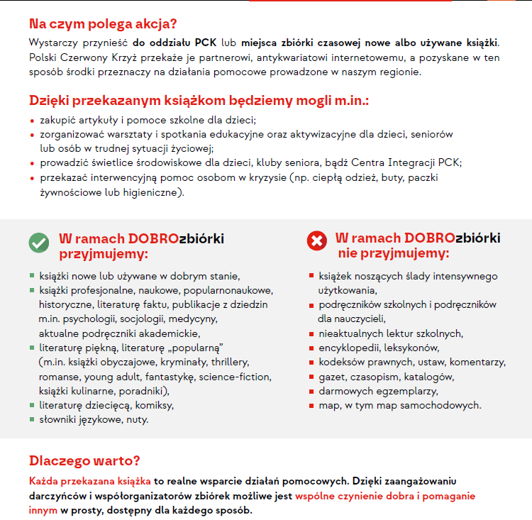Serdecznie zapraszamy do udziału w szkolnej zbiórce książek w ramach akcji DOBROzbiórka organizowanej przez Polski Czerwony Krzyż. Zbiórka potrwa od 20 kwietnia do 29 maja 2026r.